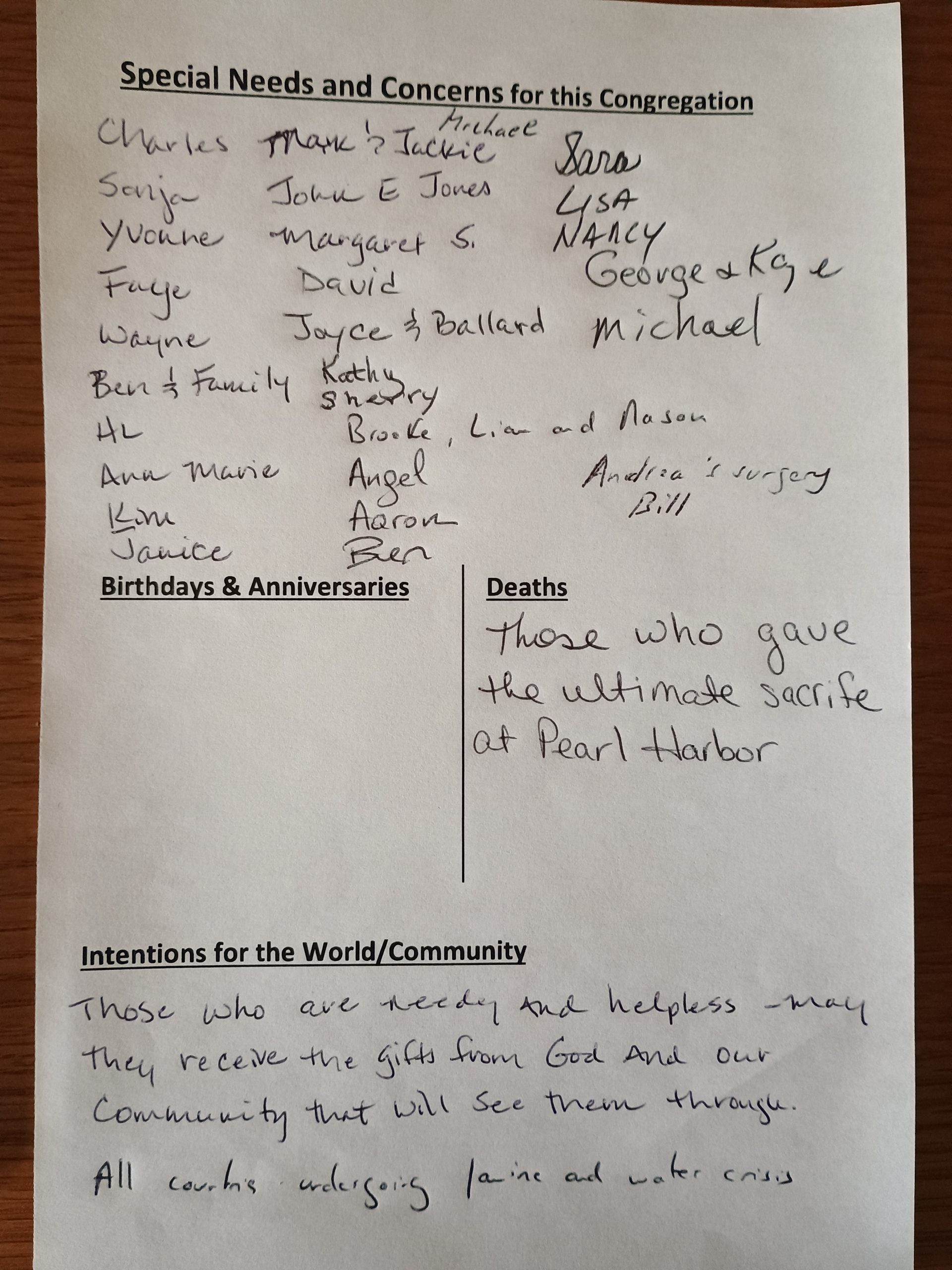 You can also download our latest prayer list